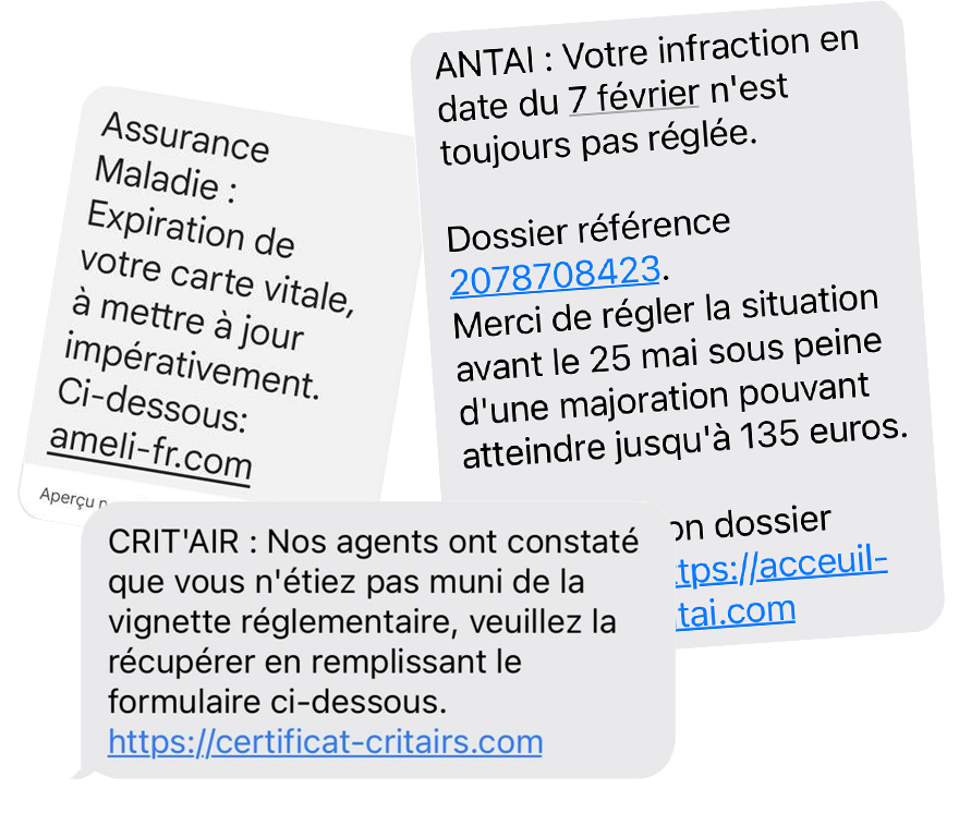 Carte vital périmée, problème d’acheminement de votre colis, infraction à régler de toute urgence, vignette Crit’air manquante sur votre véhicule, convocation par mail de la gendarmerie… Si vous avez déjà été notifié de l’une de ces informations, vous avez peut-être déjà été touché par une arnaque.