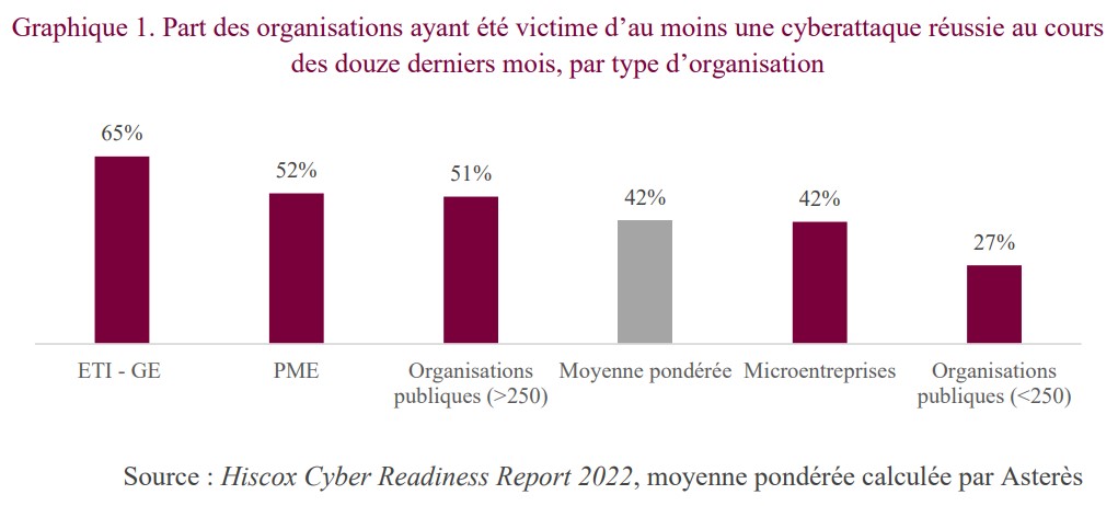 Selon une étude du cabinet ASTERES, pour les entreprises « le coût direct moyen d’une cyberattaque réussie en France est estimé à 25 600€ (hors rançon). » Pour une grande entreprise, ce coût peut être estimé à 64 000 €.